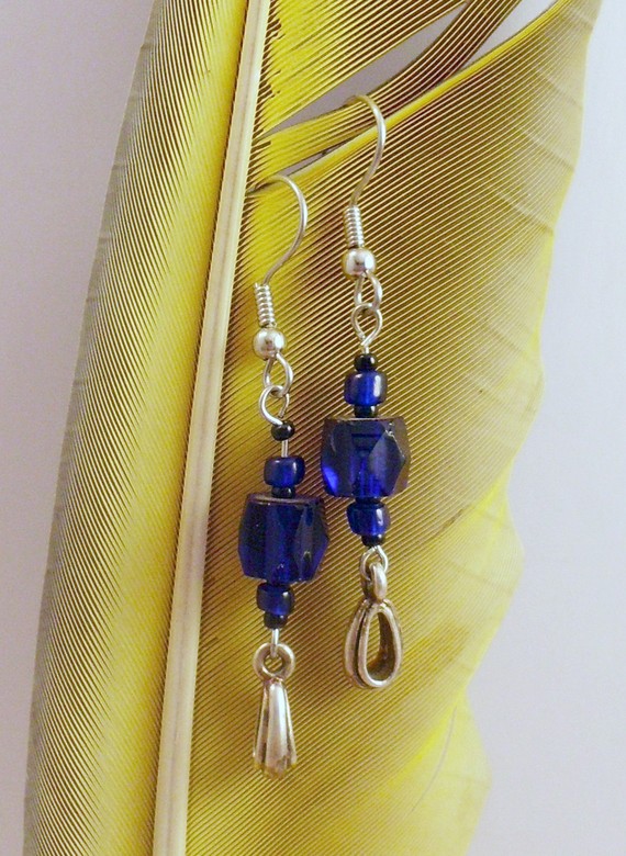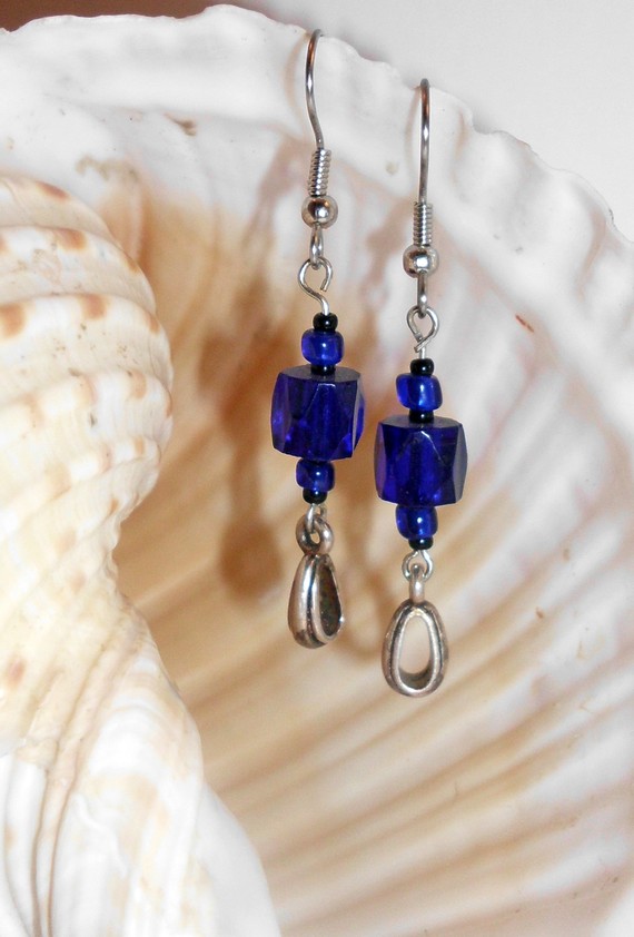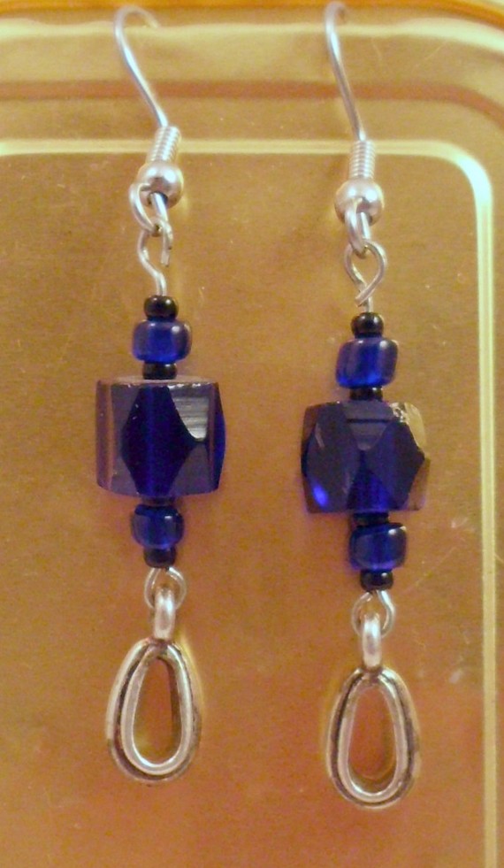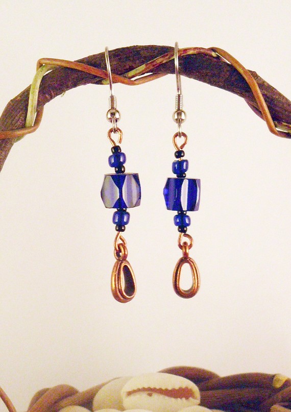 These great dangle earrings are awesome! They have the most beautiful cobalt blue glass beads. These classy beauties are available with a silver or copper loop dangle, just make a note at the time of purchase of your preference! Perfect for that special night out or just to the corner store, lol! They are approximately 2 1/4" long.