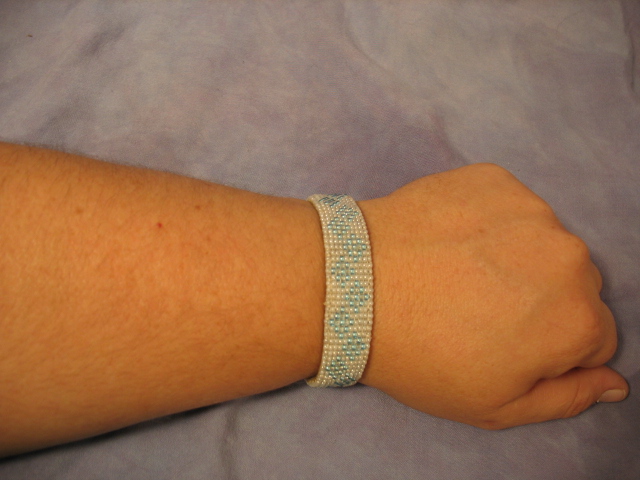 Baby Blue and White Beaded Bracelet - Peyote Stitched