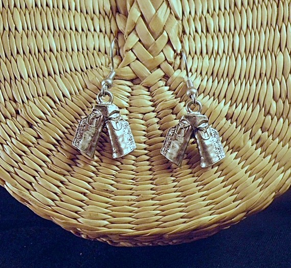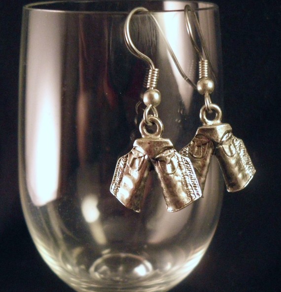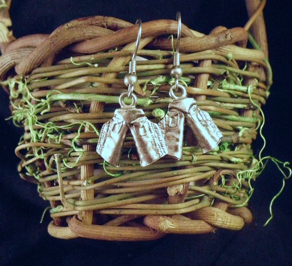 These adorable silvery pewter 3-D Chaps dangle earrings were made with awesome details! You can see the pockets, fringes, etc. very clearly. I just couldn't resist these cute little charms! They are approximately 1 3/4" long and are hung from silver tone French hooks.