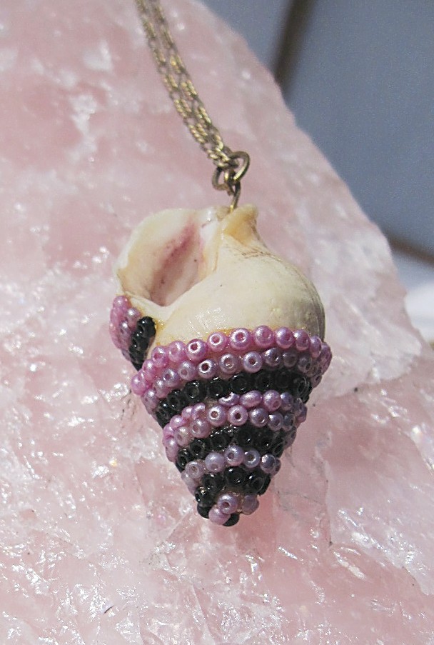 I found this shell on Titlow beach here in Tacoma, WA. I love making necklaces and due to the OOAK nature of shells and mineral and some of the other materials I use, as well as my natural inclinations, this is a very unique piece.
