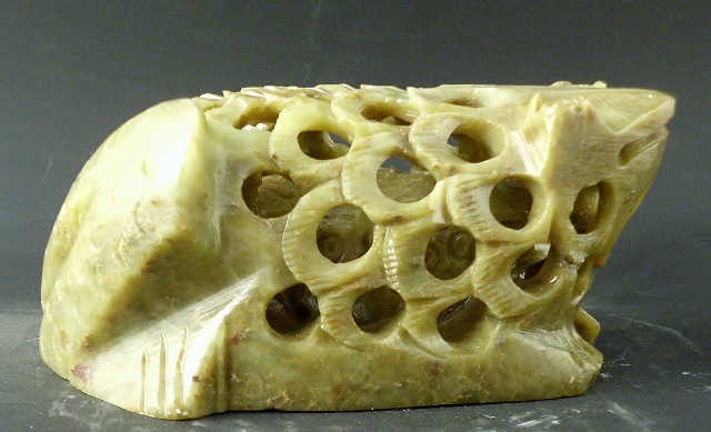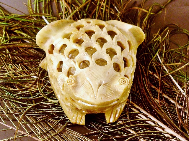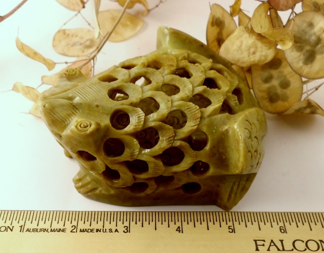 These beautiful and intricately carved soapstone frog is too cool! They some how managed to carve a little frog inside the bigger statue, this has to take years of practice to master!