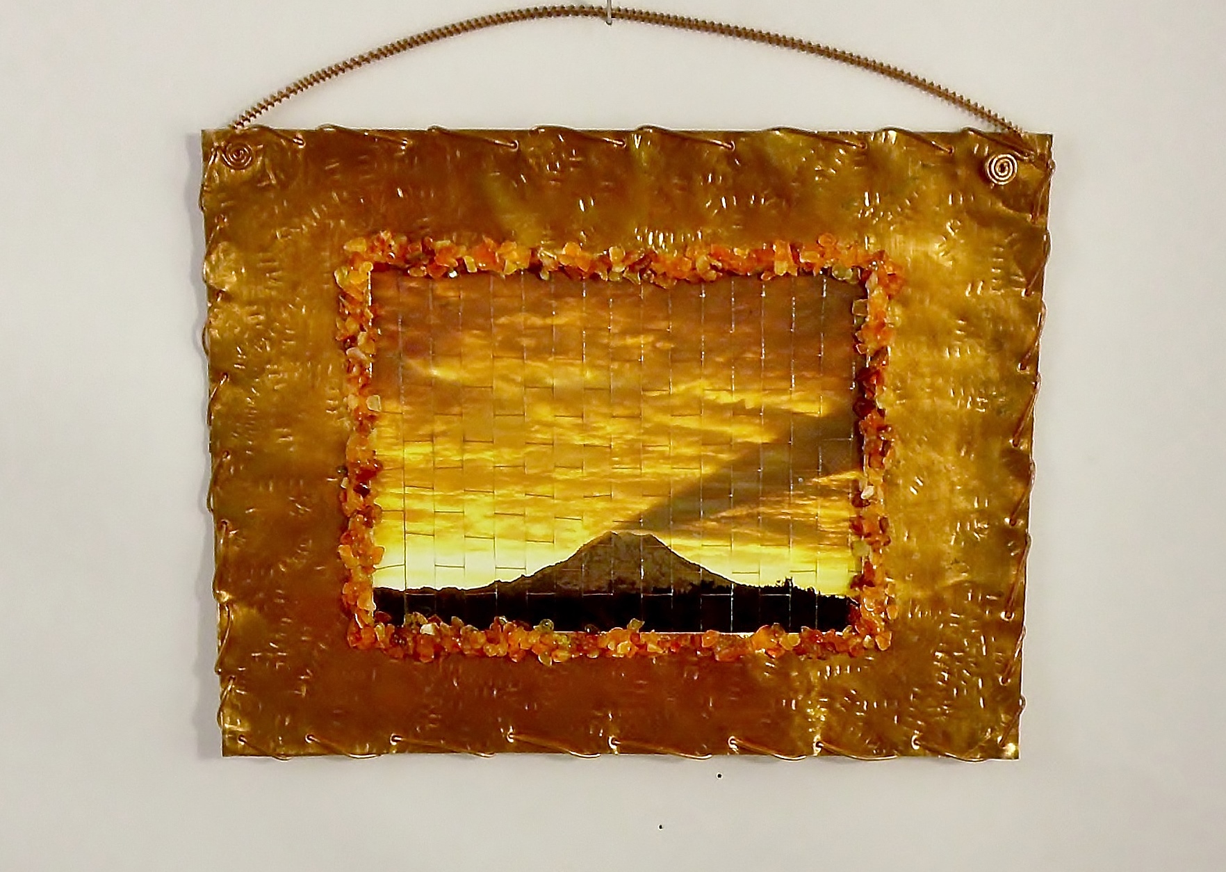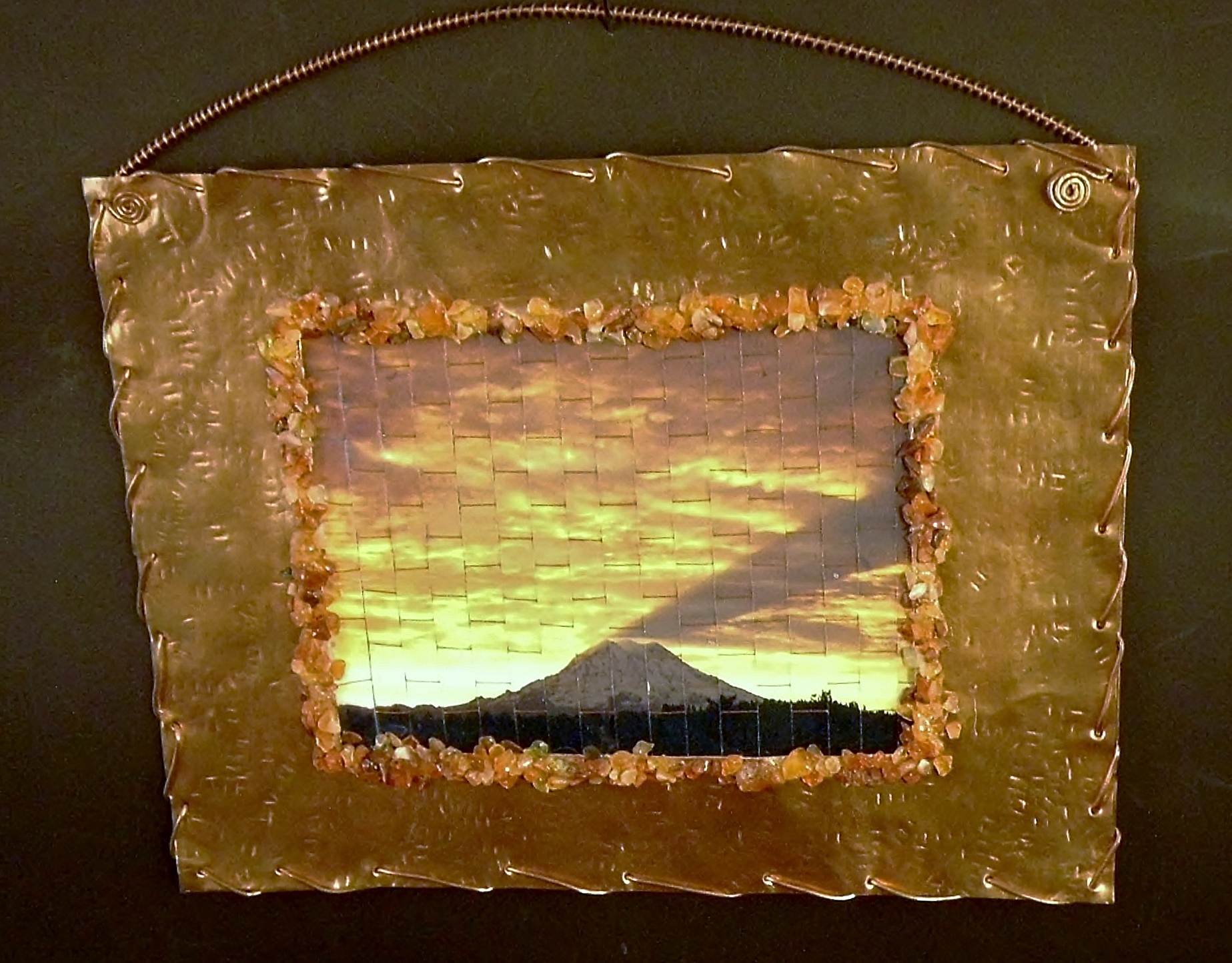 Woven Photo in Copper Frame - Mt. Rainier Shadow w/Carnelian