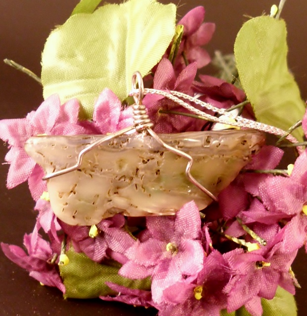 I LOVE abalone! I think it is one of the most colorful and mesmerizing of all shells. This dainty little polished freeform piece hangs off a delicate sterling silver chain and is very light yet eye-catching with iridescent pink, blue, green, silver, and gray running throughout. Both sides are polished to a high sheen.