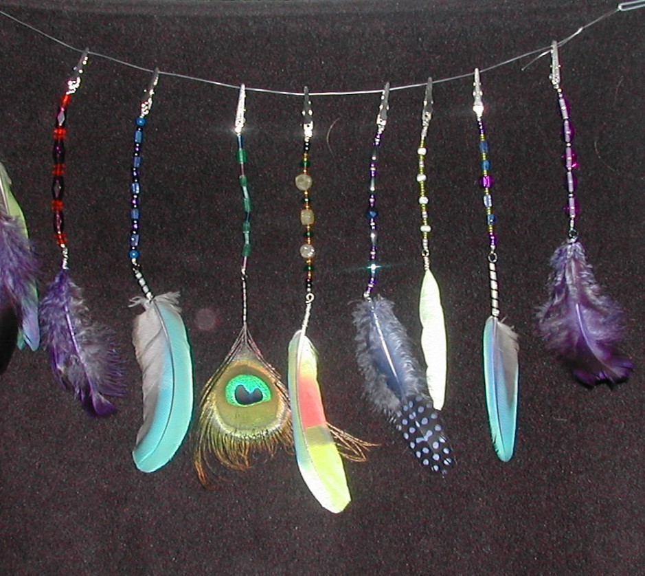 The feathers are from different species of birds including: peacock, chicken, pheasant, duck, parrots, and any others I can get a hold of!