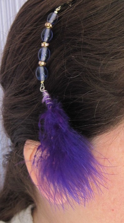 I have sooo much fun making these :) They are made with genuine feathers, some dyed of course. The bead work is glass beads with some occasional stone beads. They vary in length from around 6" - 10", depending on the length of the feather and how carried away I got with the beading! :)