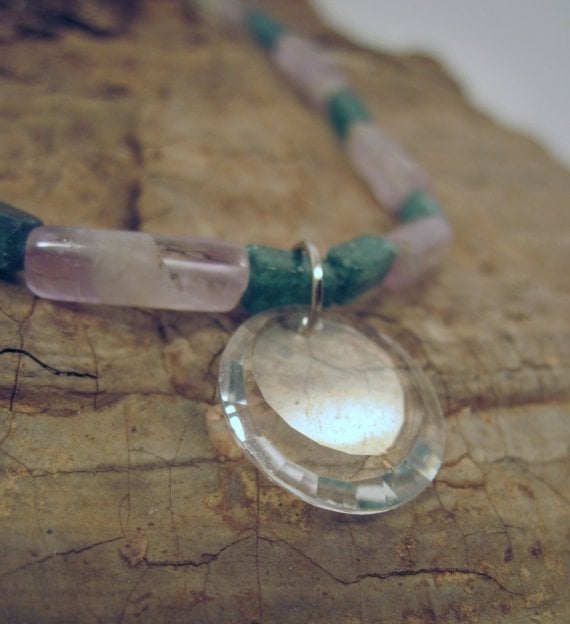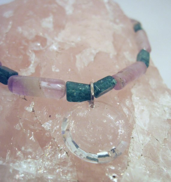 I put this piece together using Amethyst barrels, Aventurine rectangles and finished it off with a sparkling, flashy Swarovski crystal. Very classy looking!