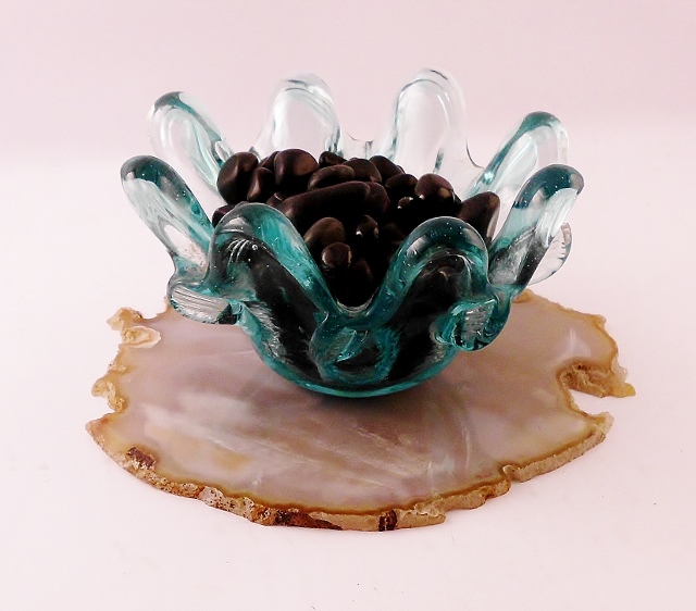 Vintage Italian Blue Glass Pinch Bowl on Agate Slice