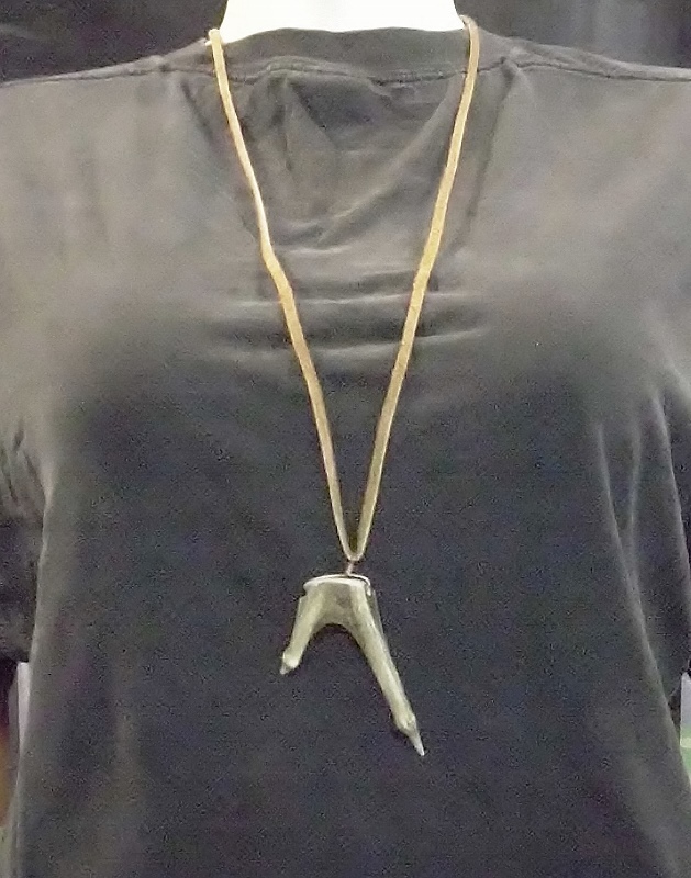 This unique and previously unidentified "antler" pendant has been identified!! It is in actuality the bone from a dragon's wingtip!! It is approximately 3 1/2" long and the leather necklace itself is 42" long. I made this one extra, extra long for versatility. It is a unisex piece appropriate for both men and/or women!